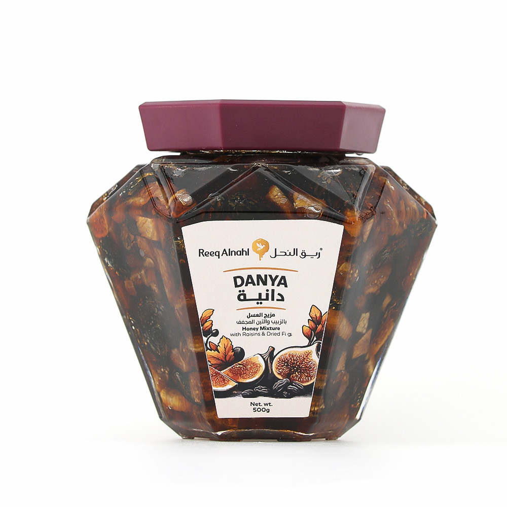 DANIA Category: Honey Mixtures Reeq Alnahl Description More Products Product Description Dania Honey is a new and exclusive product from Reeq Al Nahl, a unique blend combining the authenticity of honey, the freshness of figs, and the deliciousness of raisins. Read more Honey Kashmiri Sidr Honey Read more Honey Derivatives Jordanian Royal Jelly 20 grams